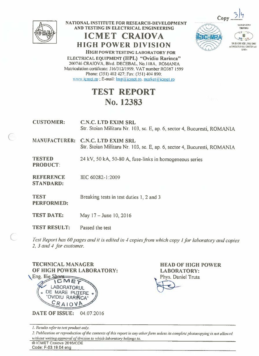 CNC LTD is a Romanian manufacturer of medium-voltage fuses, offering ISO-certified quality and proven reliability for energy utility companies worldwide.