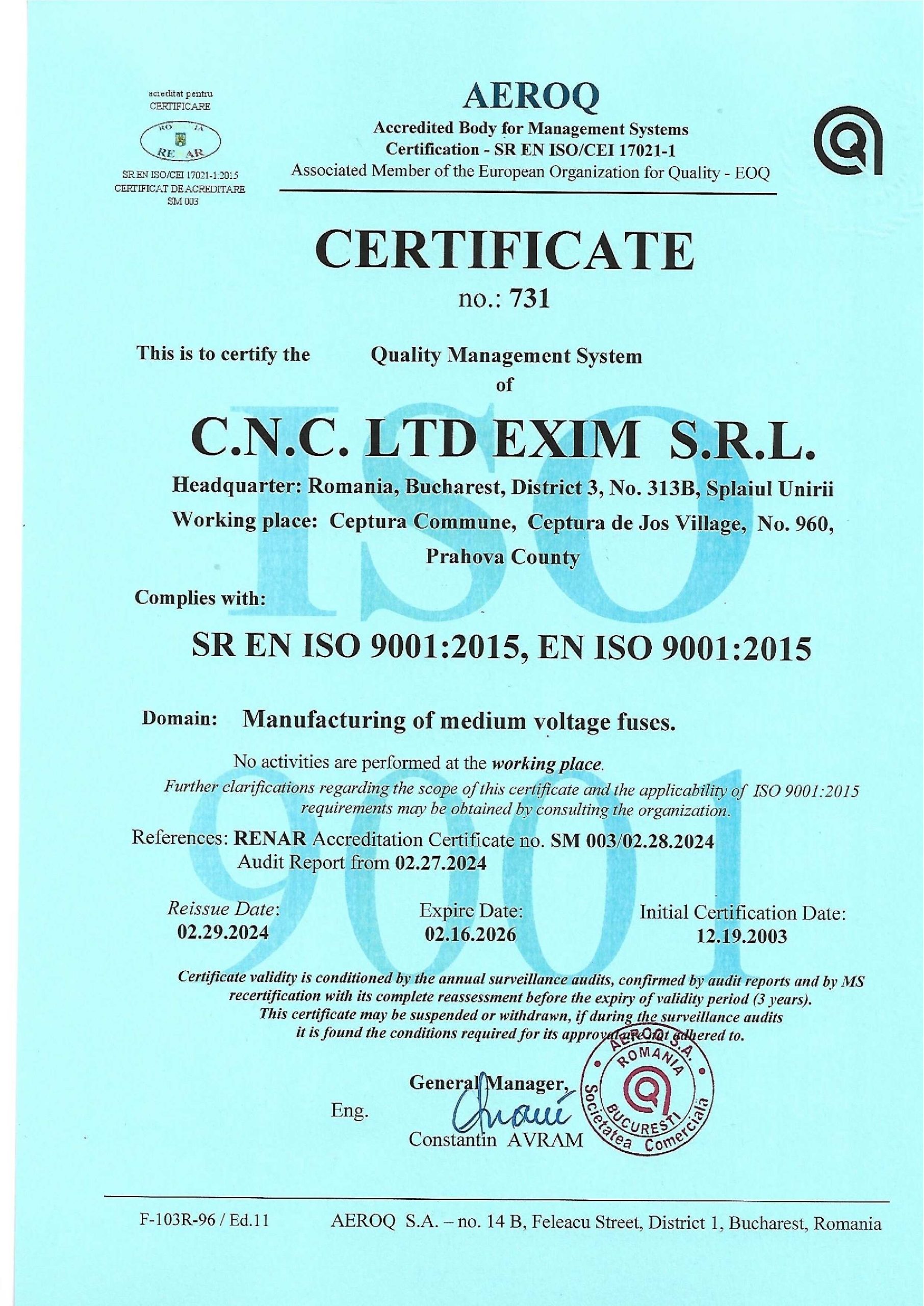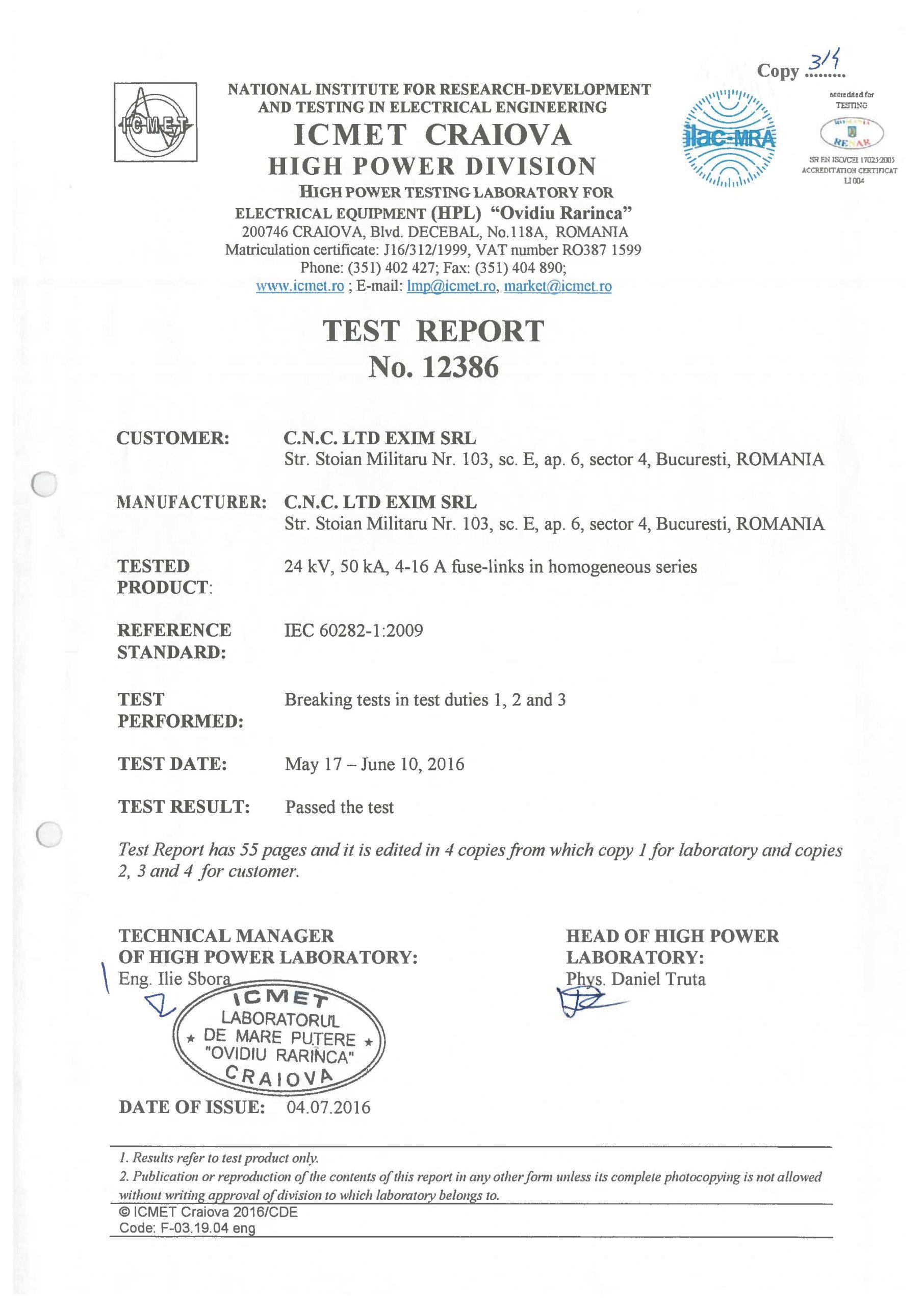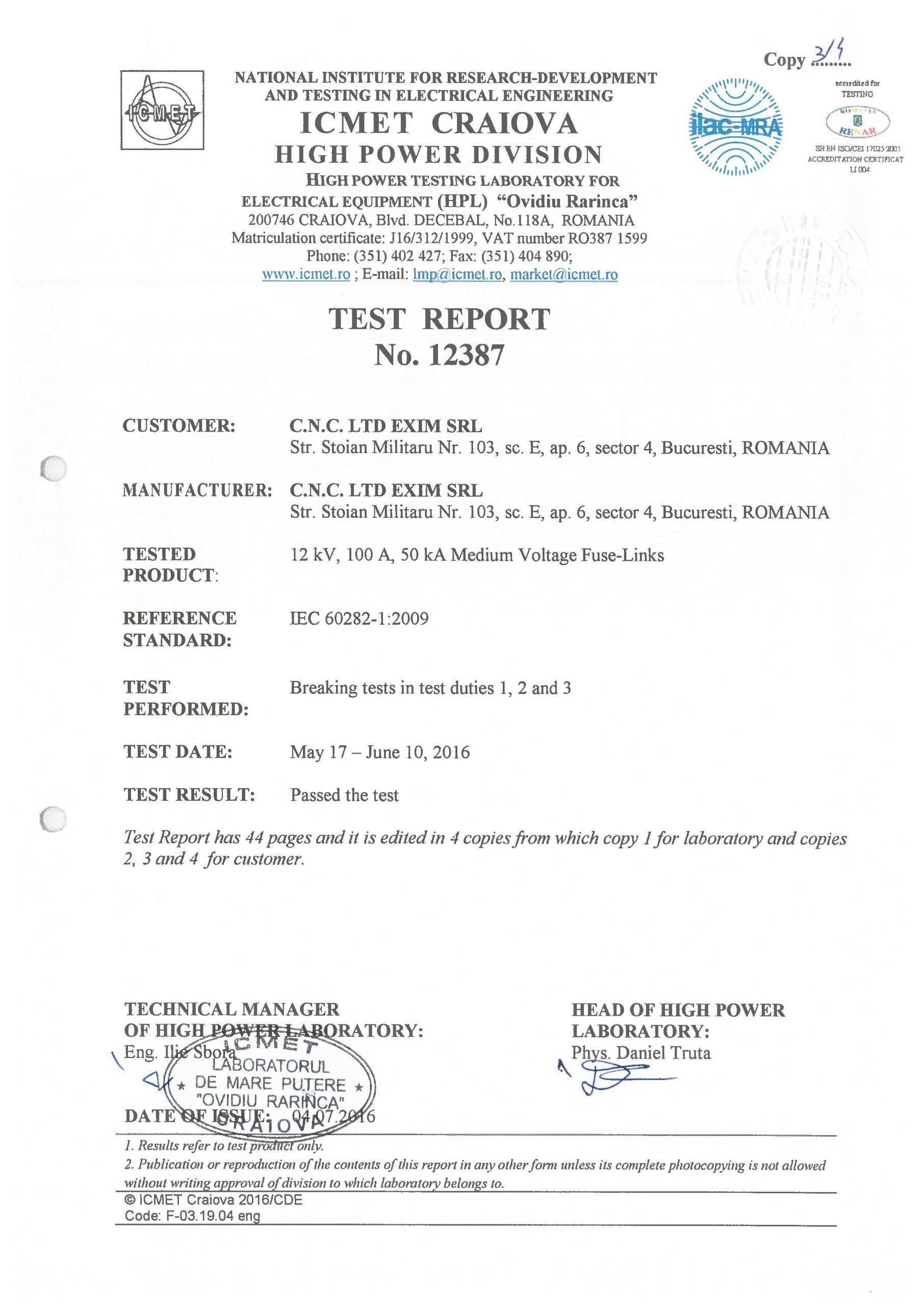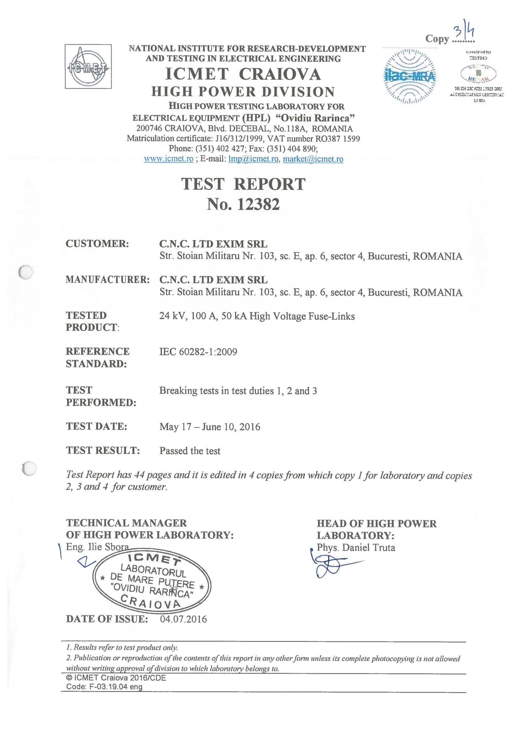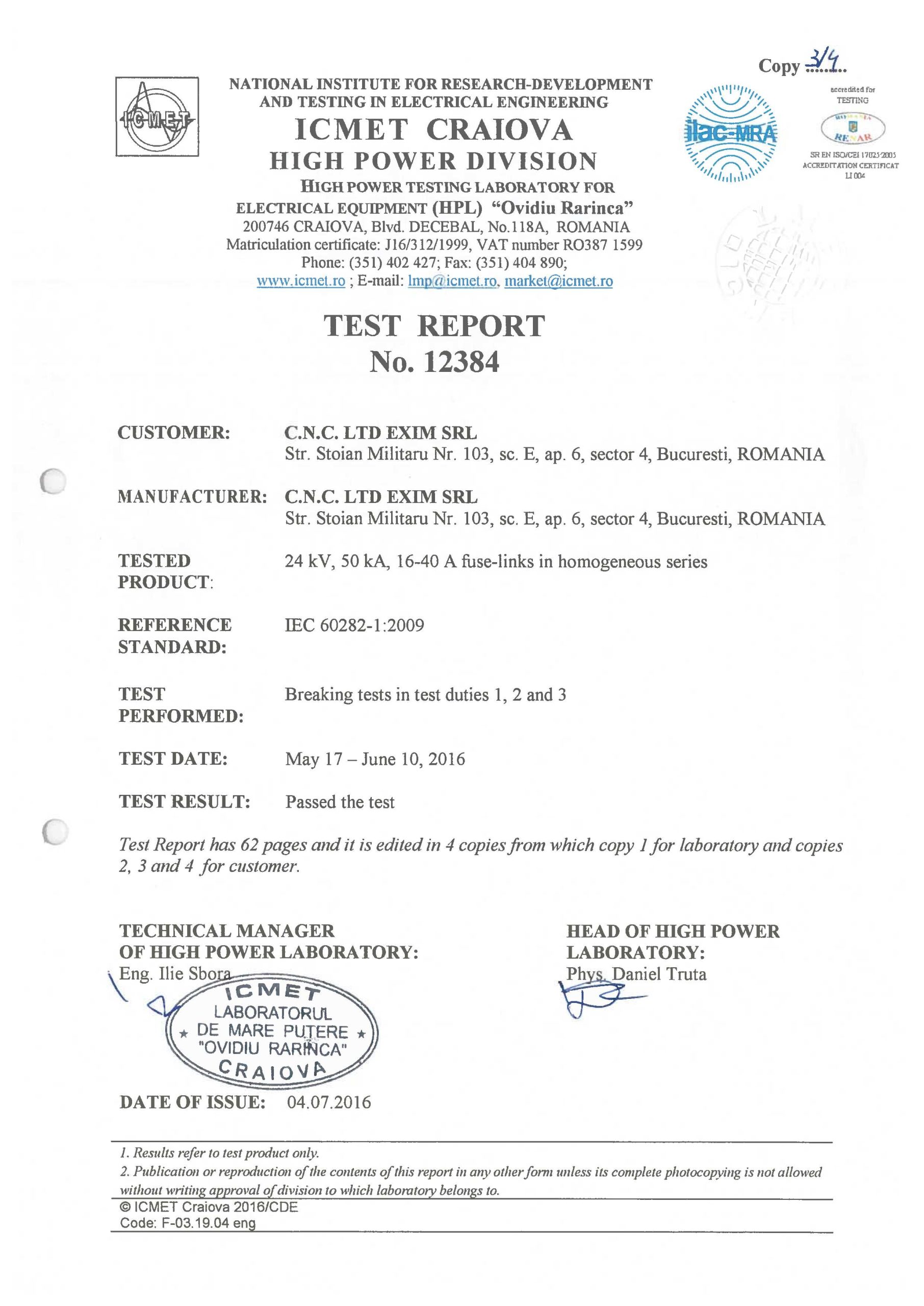 ISO 9001 certified since 2003. Our fuses are tested in accredited laboratories in Germany and Romania.